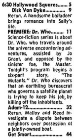 - 29 September 1975: Doctor Who make its series debut in Chicago, screening weekdays at 6:30pm. The first serial to air is The Mutants. Serials continue to air out of order.
