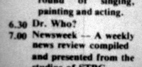 There were no TV listings in the 4 February 1978 paper, but it's clear that '''Doctor Who''' must have aired the week that television broadcasts commenced in Swaziland, given that there are 18 episodes to be accounted for in the first run.