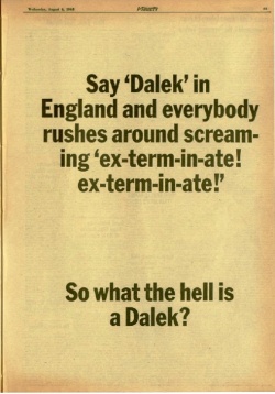 [[File:DrWhoandtheDaleks 19841006.jpg|thumb|right|250px|WOR airing, 1984]] | [[File:DrWhoandtheDaleks 19841006.jpg|thumb|right|250px|WOR airing, 1984]] | ||