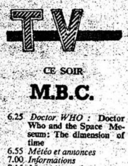 Mauritius was the 21st country to screen Doctor Who (see Selling Doctor Who).