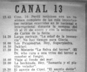 | 01:13, 26 March 2011 | Chile Trece.JPG (file) | 69 KB | Jon Preddle | TV listings for Chile, El Mercurio / El Sur 1969 | 1 | |