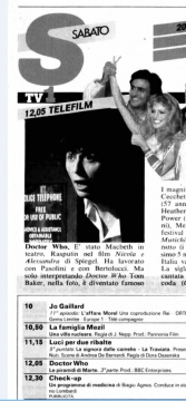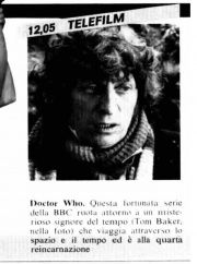 | 00:32, 27 April 2015 | ItalyTomBaker.jpg (file) | 104 KB | Radiocorriere, 28 Nov 1981 | 1 | |