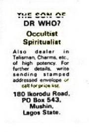 | 21:33, 3 May 2015 | SonofDrWhoad.jpg (file) | 39 KB | Son of Dr Who ad from Drum 1979 | 1 | |