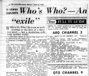| 02:18, 14 January 2017 | ABCBris22Jan65.jpg (file) | 1.25 MB | Courier Mail (Brisbane) 22 Jan 1965 | 1 | |