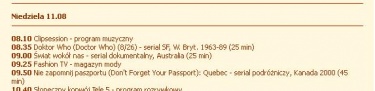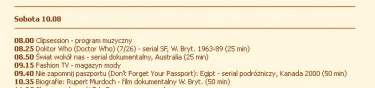 Starting from Saturday, 20 April 2002, the Polish satellite station TELE5 commenced a run of 26 Tom Baker episodes, running Saturdays and Sundays at 9.30am. As far as can be determined, this run of episodes consisted of Genesis of the Daleks through to The Android Invasion. The run was cycled through at least three times. For the second run, the times shifted to 8.25, 8.30 or 8.35am. (Episodes 7 and 8 were repeated on 10 and 11 August 2002 – see clippings.)
