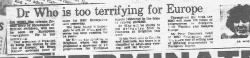Two Tom Baker stories were missed – Genesis of the Daleks and Pyramids of Mars – presumably on account of censorship. As had been reported in DWM 54 and DWM 168, the series was discontinued mainly on account of its violence. This action may have been why the BBC subsequently found it difficult to sell the series elsewhere within Europe in the late 1970s – see Europe for more on this.