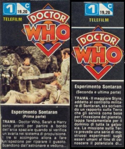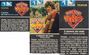 In Il Tempo, there were a number of "oddities". On 22 February, the listing given was for La Sconfitta degli Zigoni, but the following week, it was not stated (N/S); but the next two weeks had Il Pianeta del Male; so presumably the Zygon story was dropped in favour of this other serial. (The paper also incorrectly billed Michael E Briant as the director.)
