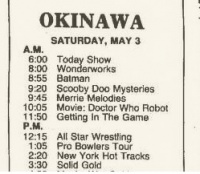 In terms of the screenings covered by this profile, Okinawa was the fifth of the eight regions to air the series. (Okinawa was the site of the Kadena Airforce Base and a US Marine Corps facility.)