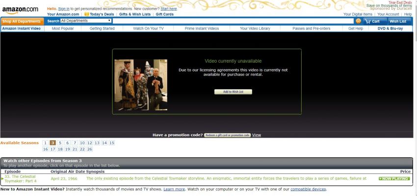 For Amazon Prime's UK's customer, however, the deal meant that from 16 March 2016 Doctor Who was no longer available to them at all!