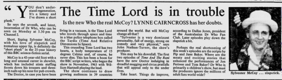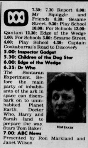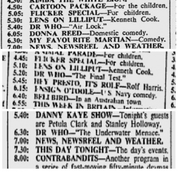 It was too late to inform some of the newspapers of the unexpected change to the forthcoming line-up, and as a result, several minor New South Wales publications, such as the Lithgow Mercury, the Scone Advocate and the Canberra Times announced in their TV listing pages of their editions the week of 16 May 1964 that the brand new series starring William Hartnell was starting on Channel 3 on Sunday 17 May at 6.30pm!