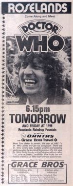 Print ad for Tom Baker signing during his visit to Australia in February 1979