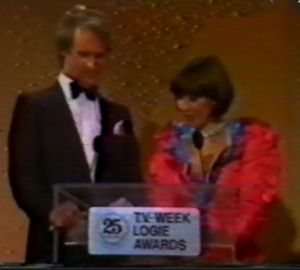 Davison was a guest presenter at the April 1983 Logie Awards (screen grab from Millennium Effect)