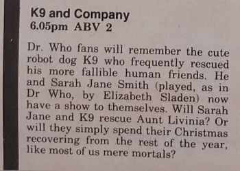 • On Christmas Eve 1984, the spin-off K9 and Company aired, from 6.05 to 6.54pm.