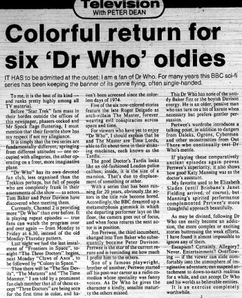 Article about repeats of colour Pertwees; Courier Mail, Brisbane, 14 June 1983