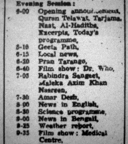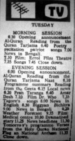 TV listings have been obtained from the newspaper Bangladesh Observer and Bangladesh Times.