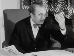 Early in the interview (conducted circa late September or early October, if the 7 September 1966 issue of Variety Weekly sitting on his desk is a recent acquisition) Sydney Newman mentions a "silly program like Doctor Who" and to demonstrate the point he casually waves around a toy Dalek that he keeps on his desk (from 2:44). The subject of discontent at the CBC (prompted by the interviewer) started at 13:03 with peaks at 22:10 and 26:35. Sydney Newman closes out the interview with statements on commercial television starting at 40:47 where he offered such points as "I believe in commercials in the middle of the program" and "The forced break in the middle of a play is an exciting structural toe-hold that a writer can really use".