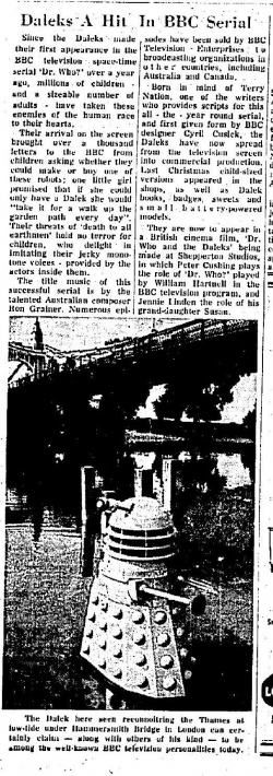 Doctor Who sold to Canada; Winnipeg Free Press, 31 August 1965