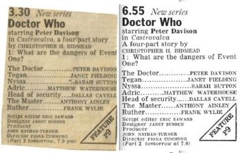 Manchester Evening News listings for BBC Wales 4 January 1982 shows the later start time for Castrovalva ep 1