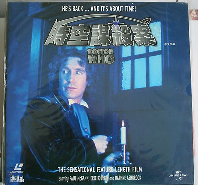 The Paul McGann TV Movie was released in China on laser-disc in late 1996 (by MCA/Universal/CIC Video (Hong Kong)), albeit manufactured in Japan), under the title "時空謀殺案" - which translates as "Murder in Time and Space". It was in English with "Chinese subtitles"; although it's not stated if it was Traditional or Simplified, the former was the more common written form of the language in Hong Kong and Taiwan. As such, it is believed that this item may have been available in Hong Kong and Taiwan only rather than also mainland China where Simplified Chinese is the more predominant written variant of the language.