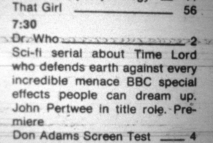 Dr Who, Episode 1 listing, 5 January 1976, Boston Globe.