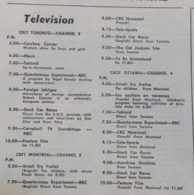 CBC Times TV listings for 31 July 1953 (issue date 17 July 1953)