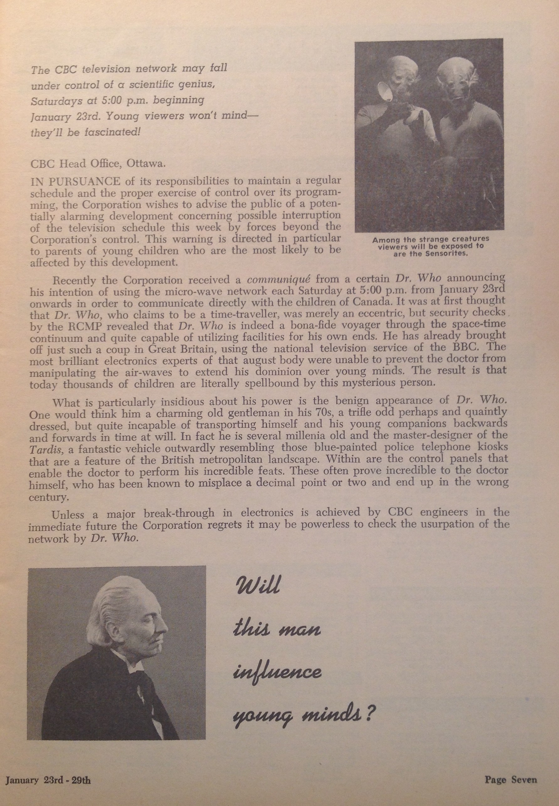 Article from CBC Times, 23 Jan 1965
