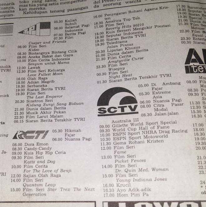 1990s listing for Indonesian TV found online (date and source unknown)