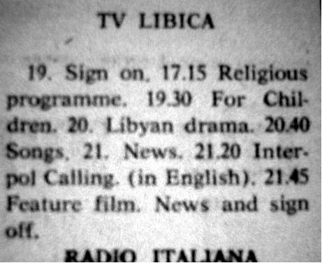 TV listing Libya, 26 Feb 1970