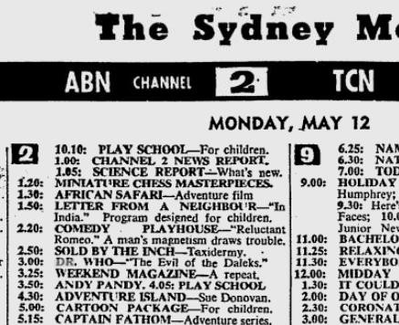 Sydney repeat, Evil of the Daleks, 12 May 1969