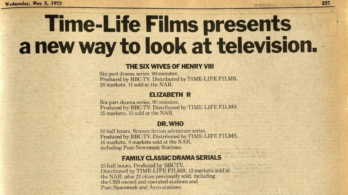 current04:34, 4 August 2012Thumbnail for version as of 04:34, 4 August 20121,115 × 625 (157 KB)Jon Preddle (talk | contribs)Time Life ad from Variety, 3 May 1972