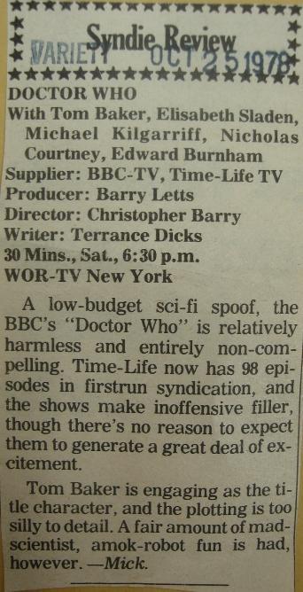 Review of WOR screenings, Variety magazine, 25 October 1978