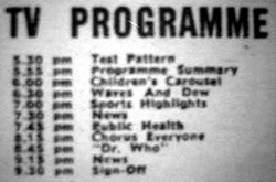Although GBC-TV had commenced broadcasts at the end of July 1965, TV listings did not appear in the paper until September 1965. But from that month and through to May 1966 there was no sign of Doctor Who, however there were quite a few regular billings saying "To Be Announced", which could well have been Doctor Who, although with 26 episodes to air, how long would a TV station continue to be unsure of what they were screening each week?