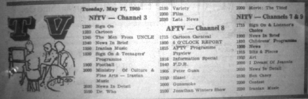 English TV listings are from the English-language Iranian newspapers The Kayhan (International Edition) and Tehran Journal.