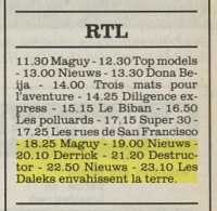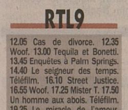 The TV Movie - the same French dub from 1997 with the title "Le Seigneur du Temps" (although the listings below incorrectly print it as "des Temps") - was shown on RTL9 (the local channel's new name) on Saturday, 27 February 1999 at 10.40pm. This screening was also available in the other European countries that were connected to the RTL network, such as France, Switzerland, Monaco, and parts of northern Africa.