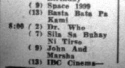 Doctor Who returned to Bacolod's Channel 4 the following year. Corresponding listings for Quezon's Channel 2 could not be found, so the series either did not return at all (unlikely), or it did play but months earlier or later than on Negros, but for which listings could not be found.