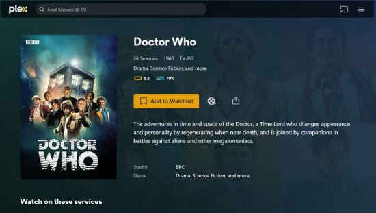 The service has menu listings for all the New Series episodes (2005 to 2021), the Paul McGann TV Movie, and all Classical series.