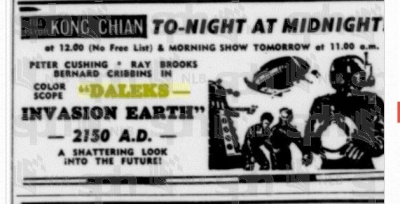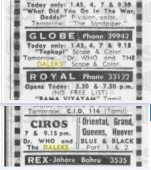 The two Peter Cushing Dalek movies were shown in Singapore cinemas.