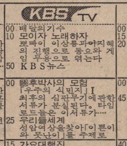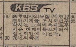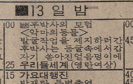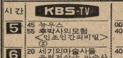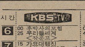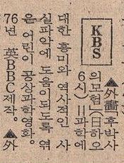 The Monday, 31 October 1977 issue of Kyunghyang Shinmun carried a story about the changes to the television service following the restructure of KBS, and amongst a preview of the forthcoming programmes is a reference to "Dr. Hu's Adventure" (Sunday 6pm), "a science fiction serial designed to give young children an interest in science and history... [made by the] BBC."