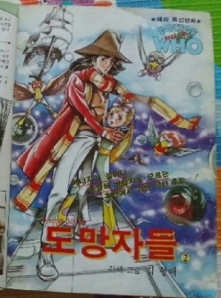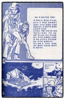 In the February, March and April 1984 issues (numbered 17,18,19) there was a strip based on Doctor Who, written and drawn by the highly-regarded Korean artist, Kim Hyung Bae (김형배). It featured a Manhwa version of the fourth Doctor who travels with a girl called Joy in the TARDIS - which has fins and flies like a rocket!