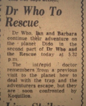 Story Code: L / Season 2 UK Airdate: 2 Jan to 9 Jan 1965 Doctor: William Hartnell