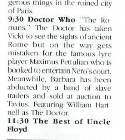 - Compilation: The Doctor encounters the infamous Emperor Nero when the Tardis materializes in Rome, circa A.D. 64.