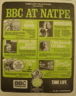 • At the 4-8 March 1978, NATPE (National Association of Television Program Executives) exhibit, held at the Bonaventure Hotel in downtown Los Angeles, Time-Life Television promotes its latest syndication package of BBC programming, which includes Doctor Who. A lavish glossy sales brochure promoting the 98 AMAZING HALF HOURS is handed out to prospective buyers, which includes representatives from a number of PBS and network-affiliated stations across the US, as well as broadcasters in Ecuador, Venezuela, Mexico and Chile...