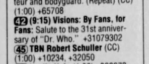 WXEL channel 42 produced this 20-minute special to celebrate Doctor Who's 31st anniversary. It was hosted by fan Charles Martin and featured John Levene (Sgt Benton), who was living in the area at that time.