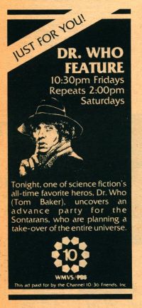 • 23 November 1983: The Five Doctors airs. Milwaukee-area viewers with RVS or Viacom cable systems could have watched the anniversary special at 7:00 on WHA, 9:00 on WMVS, and 10:30 on WTTW.