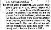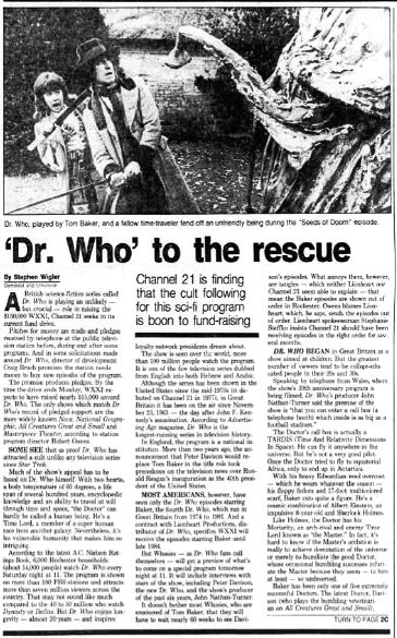 - Late 1978: WXXI screened the Tom Baker stories from late 1978.