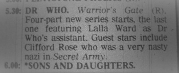 Story Code: 5S / Season 18 UK Airdate: 3 Jan to 24 Jan 1981 Doctor: Tom Baker